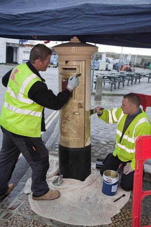 A Grã-Bretanha é um país fiel as suas tradições.As cabines telefônicas, os taxis londrinos, os pubs e até a rainha são alguns ícones que parecem imutáveis ao longo de décadas e por vezes séculos. As Olimpíadas de Londres estão contribuindo para a transformação de um outro símbolo britânico que permanecia petrificado no tempo desde 1874: as caixas de correio ou para ficar mais chique “pillar boxes”. Como forma de se engajar no espírito olímpico e demonstrar o seu apoio aos atletas da casa, o UK Postal Service, decidiu homenagear os ganhadores das medalhas de ouro, pintando de dourado os “pillar boxes” mais próximos das residências dos medalhistas . Os “pillar boxes” tradicionalmente sempre foram vermelhos e nunca tinham mudado de cor em quase 150 anos. Existem 115.000 caixas de correio espalhadas pelo Reino Unido…Por enquanto os pintores do correio não tiveram muito trabalho…apenas 11 medalhas de ouro foram conquistados e portanto 11 caixas foram pintadas mas até o final das Olimpíadas e com o início dos Jogos Paraolímpicos, os anfitriões estão otimistas em gastar bastante tinta dourada. Se a moda pega no Brasil, baseado na nossa performance até o momento, o coitado do pintor iria morrer de tédio e talvez um galão de tinta fosse suficiente…